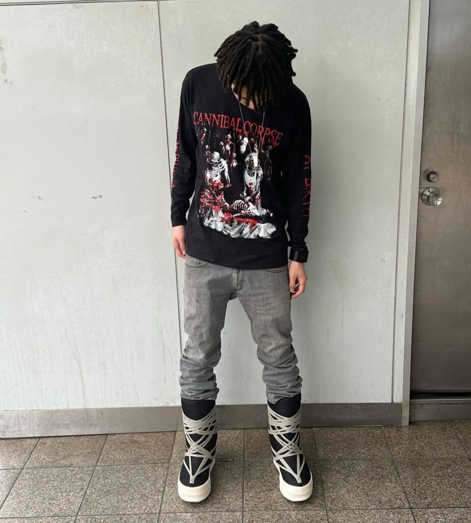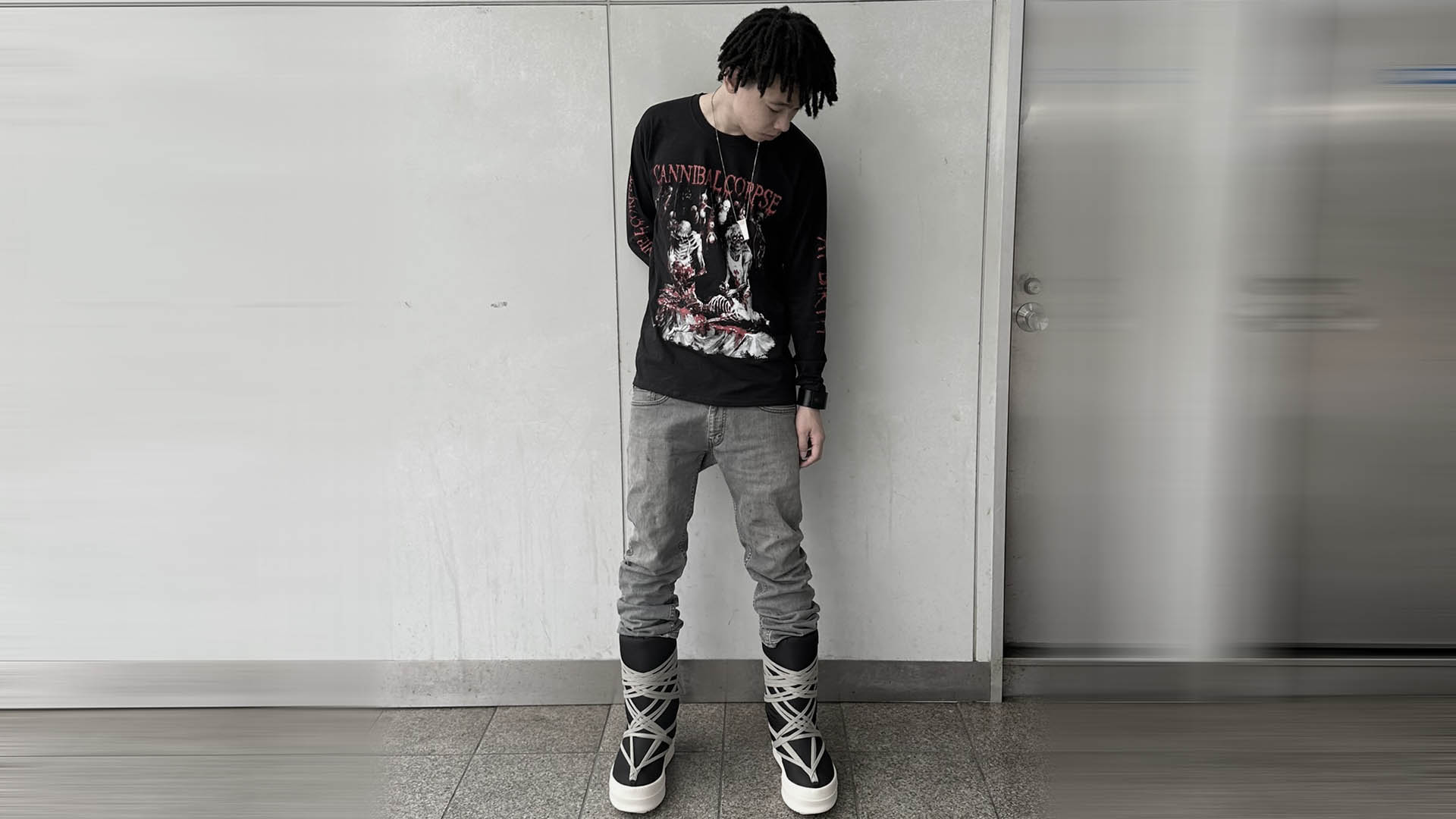 足元はアトムブーツ、耳元はOpium以降の鋭さ——けれど視線は自分の“違い”へ。